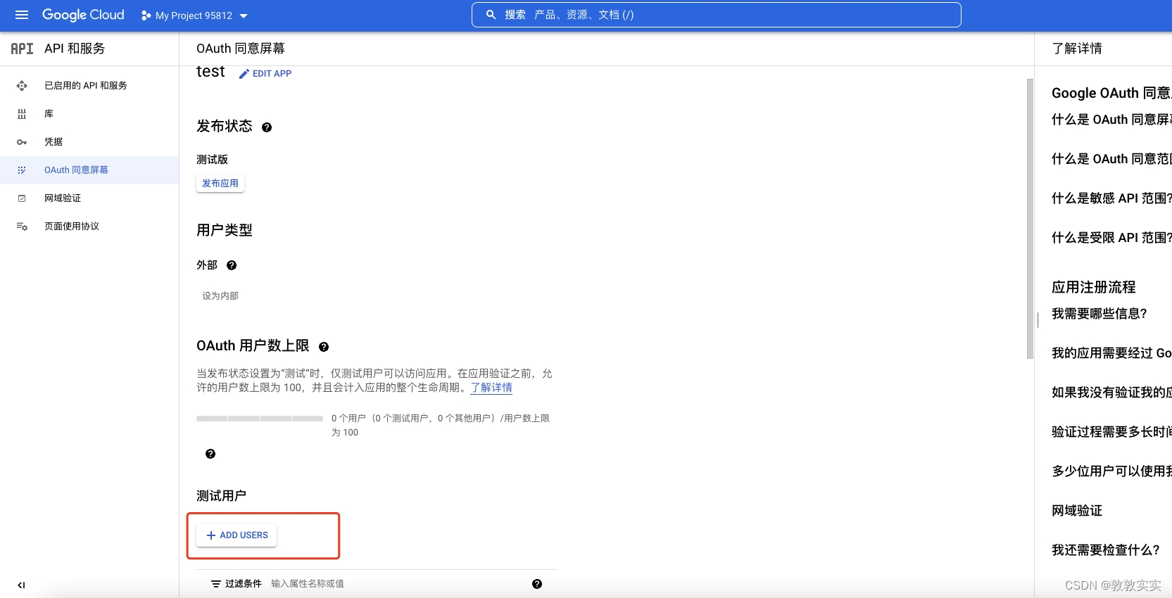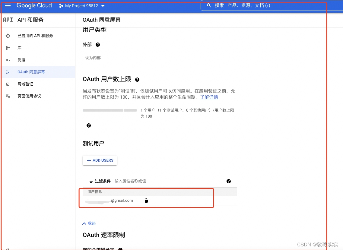 2.12点击 OAuth 同意屏幕添加测试用户