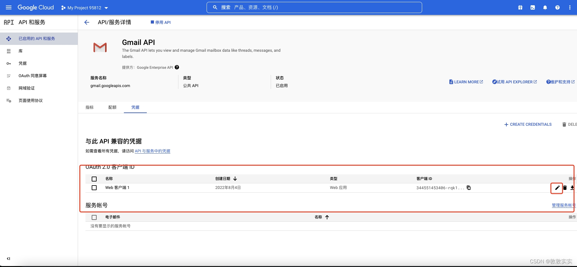 2.10然后点击凭据Tab,并编辑刚创建的凭据