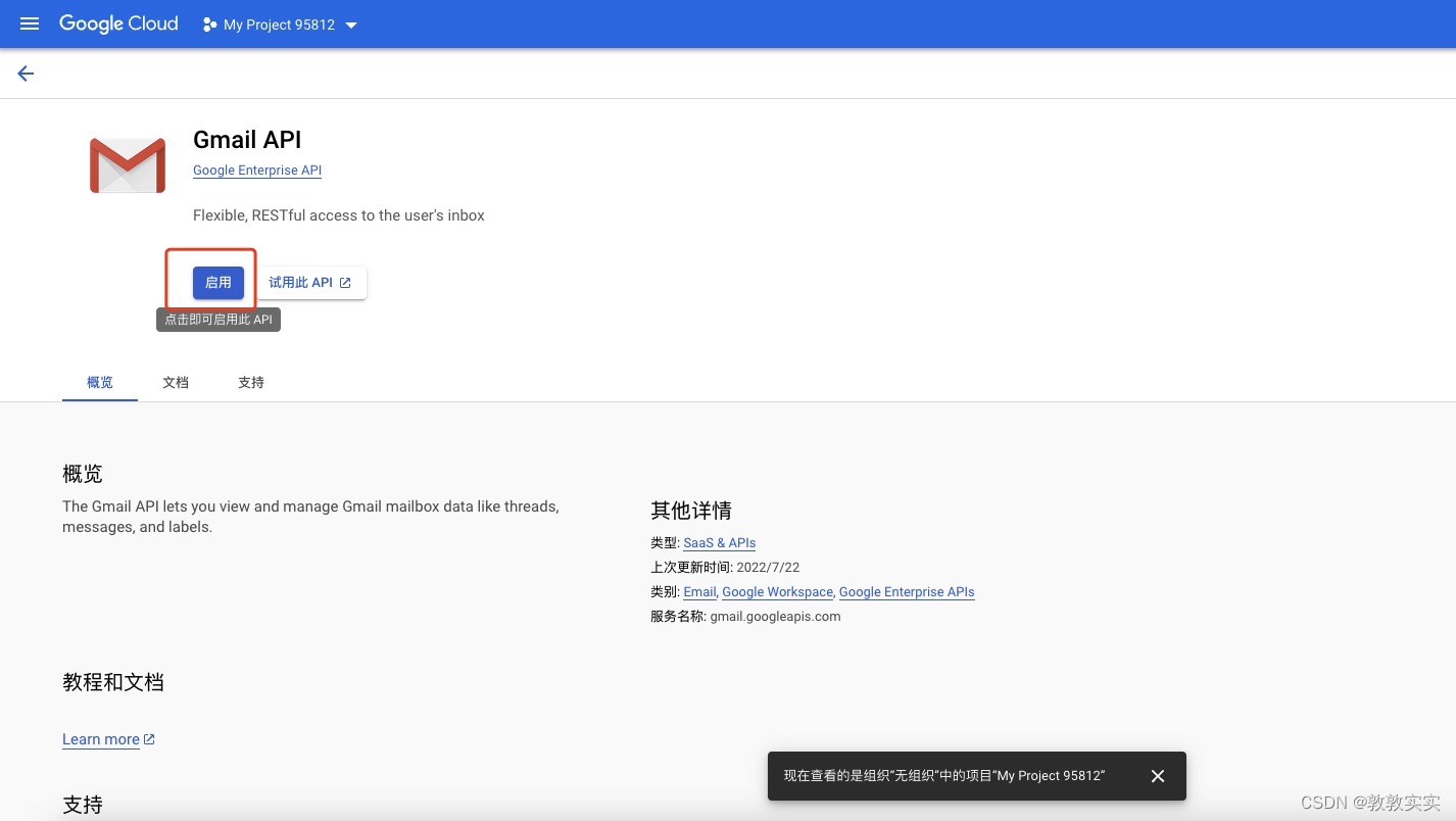 2.4创建完成后启用API