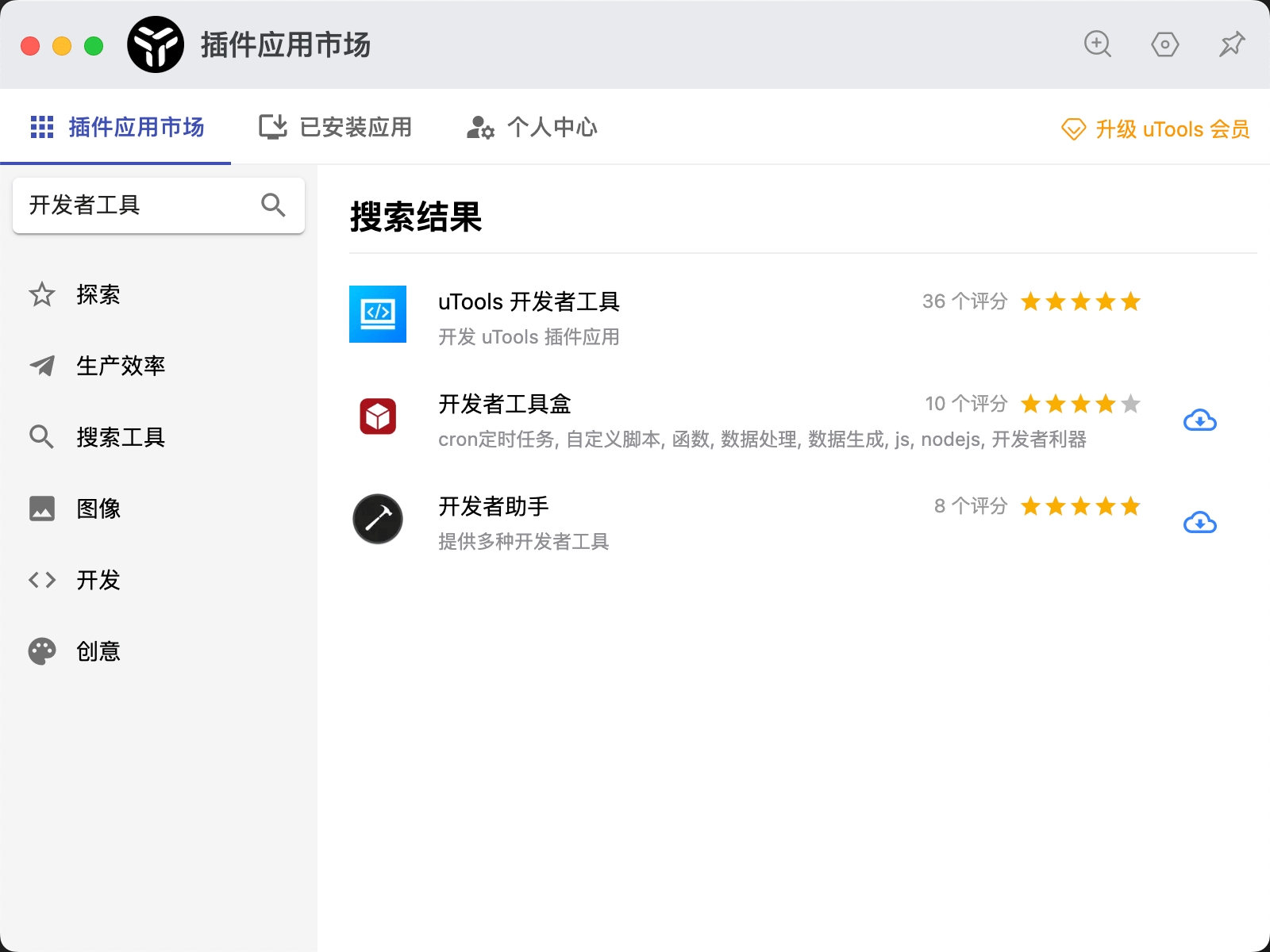uTools开发者工具本身也是一个插件,可以在uTools的插件应用市场中搜索,然后安装。