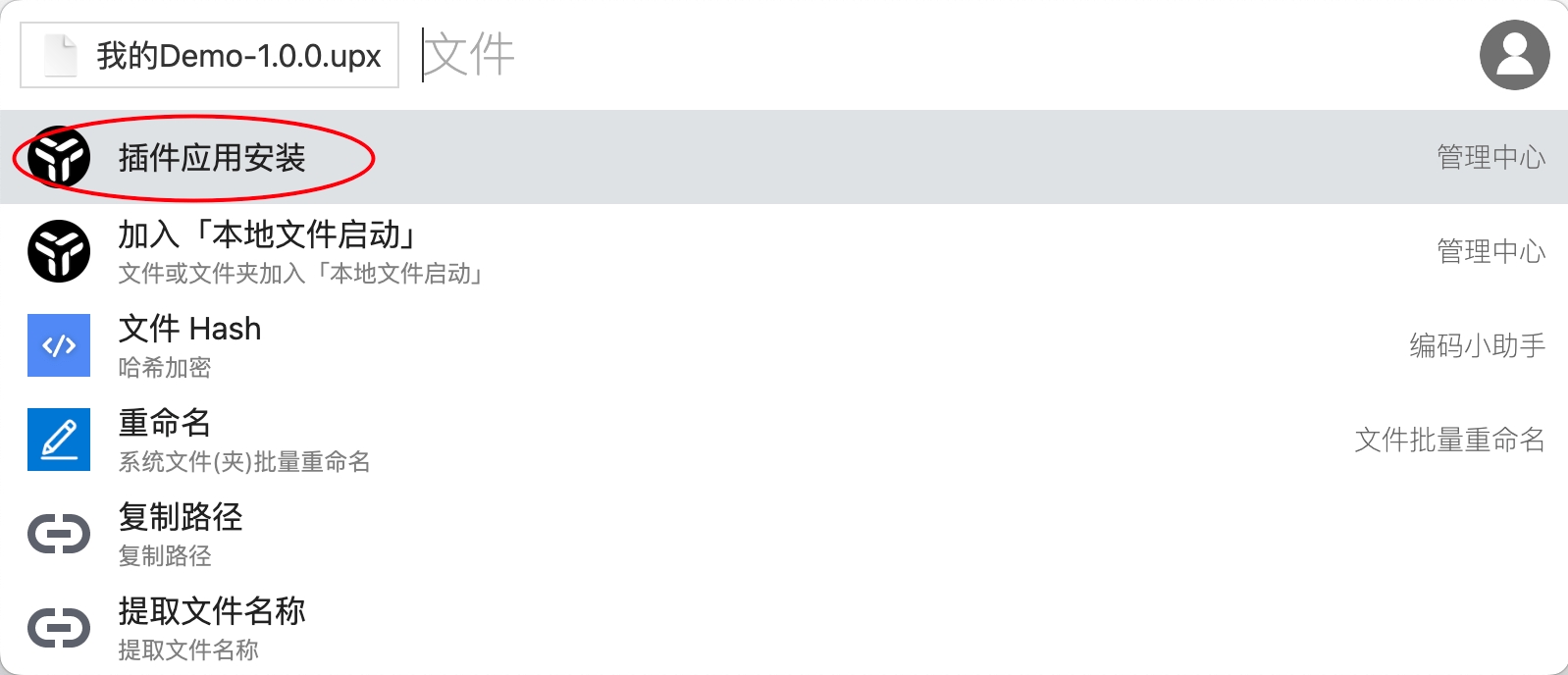**安装方法:**很简单,直接复制这个文件,然后唤出uTools全局搜索框,就会自动提示安装,但这种使用upx文件安装的插件,因为不是走uTools发布插件正常的审核流程,所以安装完后会有个提示,说这个插件非官方之类的,但不影响使用。